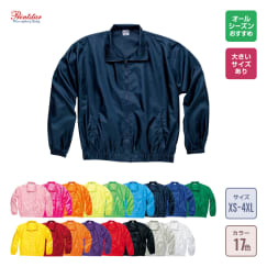 ロゴやマークの大きな表示が可能なブルゾン。前開きのデザインで着脱が簡単で、斜めに配置されたファスナーにより、フロントにプリントスペースが確保。カラーは5色で、サイズ展開はSS〜5Lのユニセックスです。