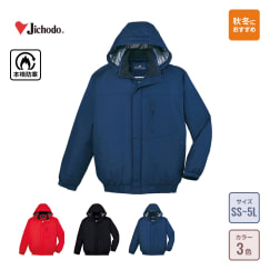 エコペットツイル&ポリエステルを使用した、フード付きの防寒コートです。上半身はもとより、腰周辺までしっかりカバーできるため、寒さの厳しい冬場の現場で重宝できるアイテムです。