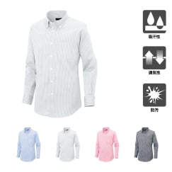作業服の静電気の帯電による火災や機器の障害を防ぐために“帯電防止織物”を使用したJIS規格適合の長袖ボタンダウンシャツです。綿とポリエステルに導電糸を織り込んで、JIS T8118基準をクリア。静電気に敏感な現場に最適です。