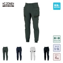 ジーベックの新ブランド、クロスゾーンより、ミリタリー調デザインがかっこいいジョガーパンツです。今らしいディテールを盛り込んだスタイリッシュな一着。カラーはミリタリーデザインに馴染む4色をラインナップした旬のモデルです。裾に施されたシャーリング加工により足首に優しくフィットする、ジョガーパンツならではの履き心地が魅力。裾のひっかかりが起きにくく、ブーツインもしやすいなど、現場でも人気のディテールを備えたパンツになっています。