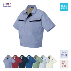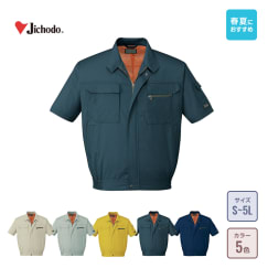 半袖ブルゾンは、タフさを追求した、ハードワーカー向けの春夏アウターです。胴回りや腕など、全体的にゆとりを持たせたデザインです。背中の脇にはアクションプリーツがあり、腕の動きをサポートできます。ブルゾンの色は、淡いカラーや濃いカラーなど5色あります。
