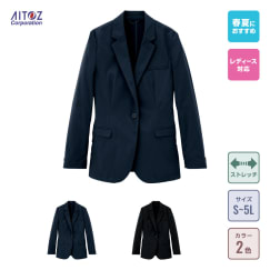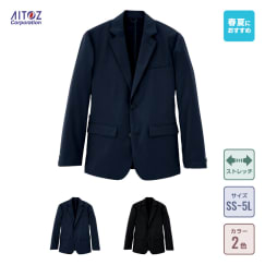 アクティブな作業から、ビジネスシーンや接客まで対応したワークウェアです。見た目はまさにスーツそのものながら、抜群の収納力と機能性で幅広いお仕事をサポートしてくれる一着。カラーはネイビーとブラックの2色展開。ビジネスシーンにも馴染むベーシックカラーで導入しやすいのもポイントです。サイズはSS~5Lまでと幅広く展開。生地の持つストレッチ性も相まって、体型を問わず着ていただきやすく、ユニフォームとしての導入も多いモデルです。