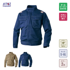春夏対応の長袖ジャンパーは、綿100%でデザイン性と快適性を兼ね備えたワークウエアとなっています。シンプルかつエッジの効いたデザインで、カジュアルなのに洗練された大人のワークスタイルを表現しました。