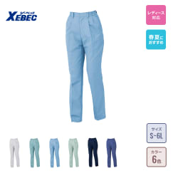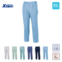 適度なフィット感によって動きやすく快適な履き心地を実現しています。タックをなくしたスマートなルックスが魅力的。また、美しさのみならず、抗ウイルス性能による安全性など機能面でも優れたパンツになっています。カラーはどなたにも履きやすい4色がラインナップされており、ユニフォームとしての採用も多いモデルです。ウエストサイズは72~114と幅広く揃っているので、一人ひとりにフィットしたサイズをお選びいただけます。