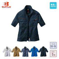 バートルらしいタイトシルエットがかっこいい半袖ワークジャケット。日本製の薄手のT/Cライトチノ生地を使用した、夏らしい着心地が人気の一着です