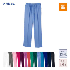 ウエスト総ゴム仕様でラクな履き心地のスクラブパンツ。通気性が良く、吸汗速乾性もあり、シワになりにくいのがうれしいポイント。