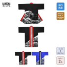 ブラックとレッド基調のはっぴです。裾にはデフォルメした波が描かれており、ソデから裾にかけては桜が描かれております。