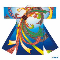 ブラックベースのはっぴです。背中上部と両ソデにかけて雲のイラストが描かれており、さらに雲から竜が出てきております。