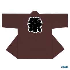 ブラウン色の祭はっぴです。ブラウン地にブラックの細かい柄が入っております。