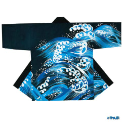 背中に大きく大波が描かれたはっぴです。波の色はダークネイビー色にホワイト色の2色を使用しておりとても迫力があります。