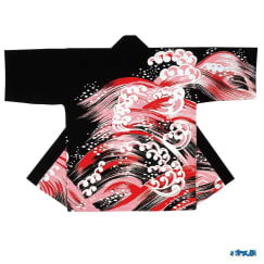 吉20386はっぴの色違いの大きい波のイラストが入ったはっぴです。本体色がレッドで波柄はホワイト色とブラック色を使用しております。