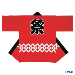 本体色はレッド色、裾にホワイトで吉原つなぎ柄、背紋にはブラック色ホワイトフチで祭文字、まさに定番のお祭り用はっぴです。