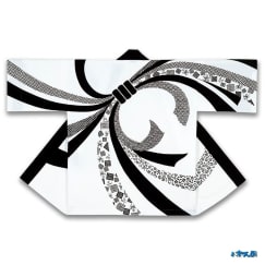 裾からソデにかけて斜めに波柄がはいったはっぴです。珍しい波柄でブラック色とホワイト色を使用しております。