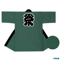 ダークグリーンの祭りはっぴです。ダークグリーンの中に細かいデザインがたくさん入っております。