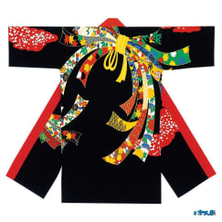 本体色が黒・衿色は赤は、はっぴでは人気の配色です。全体にのし柄が入っております。
