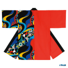 上部に豪華な華、下部に蝶々のイラストとデフォルメした波柄が入っているインパクトの強いはっぴです。