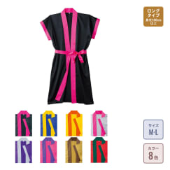 サテン地のロングタイプのはっぴです。ポリエステルサテン地を使用しているので光沢がありとっても目立ちます。学生さんに大人気のアイテム。MサイズとLサイズ 2サイズ展開です。