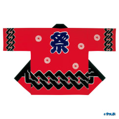 本体色はレッド色、裾にホワイトで吉原つなぎ柄、背紋にはブラック色ホワイトフチで祭文字、まさに定番のお祭り用はっぴです。