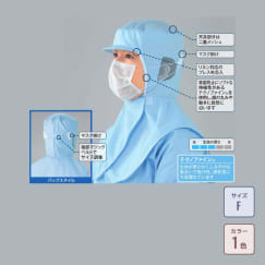 顔回りに伸縮性のある生地を使用した、やさしいフィット感が特徴の作業帽です。隙間なくフィットすることで、落髪リスクを最小限に抑えています。サイズは調整可能なフリーサイズ。帽子後部に設けられたベルトで、一人ひとりにぴったりのサイズ感に調整可能です。ズレにくく、集中して作業を行えます。