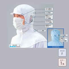 胸元までしっかり覆うロングケープが特徴の作業帽です。抗菌素材を使用し、食品製造の現場など衛生面でシビアさが求められる環境でも安全に着用いただけます。サイズは縦横にフィット感調整が可能なフリーサイズ。幅広い頭囲にジャストフィットしずれにくく、快適に作業が行えます。