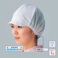 後ろに向かって、ゆったりとゆとりを持たせたシルエットが特徴的なレディース作業帽です。まとめ髪でもつっぱりにくく、ストレスなく着用できる帽子になっています。また、抗菌素材を使用するなど衛生面にも配慮しているのもポイントです。