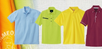 ボタンダウンポロシャツや鹿の子などのタイプ別から、吸汗速乾、コットン100%などの素材別まで在庫しております。