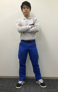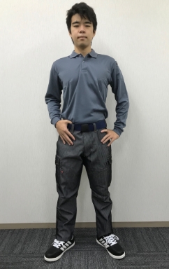 パンツはバートルの人気シリーズ1502カーゴパンツ。秋冬タイプのパンツですが、上着にバートルの303 長袖ポロシャツを合わせる事により着用季節の巾が広がります。