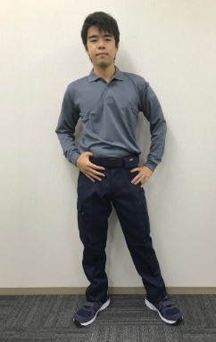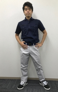 パンツはバートルの人気シリーズ 7082カーゴパンツ。 作業着の機能はしっかりと持ちながら、スタイリッシュでカッコいい印象を与えてくれるパンツです。上着はバートル 303 長袖ポロシャツ。ニット地なので動きやすく色も濃いめで汚れが目立ちません。シューズはアイトス社のAZ-51651 セーフティシューズ。お手頃価格でカジュアルな雰囲気を演出してくれます。
