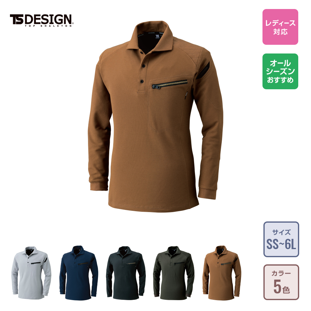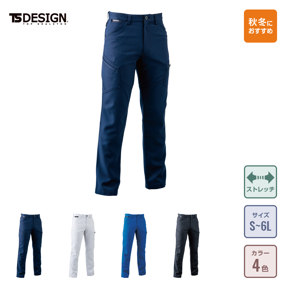 パンツはTS DESIGN 8114 ACTIVEメンズカーゴパンツ。スタイリッシュなデザインと発色の良い色で人気のあるアイテムです。上着は、TS DESIGN 5105 長袖ポロシャツ。こちらのポロシャツは作業用に設計されたポロシャツで、着心地と作業性を両立させております。