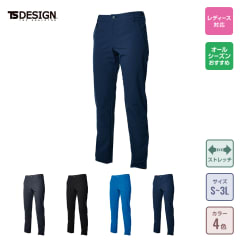 TS 4D レディースパンツは、耐久性や速乾性に優れるポリエステル素材を使用したパンツです。ポリエステル100%製品のため、シワになりにくく保管しやすいのも特徴となります。サイズはSとM、L、LL、3Lと5通りのラインナップをそろえており、着る人を選びません。