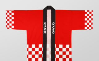 はっぴなどの商品は、カメオカが企画・デザインから行っているオリジナル商品です。