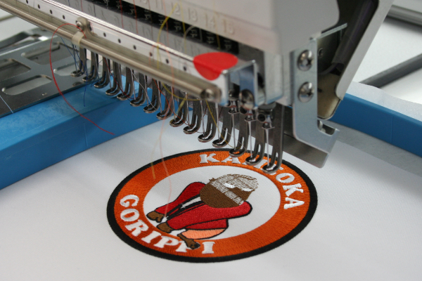 刺繍データー制作→生地に刺繍→生地をワッペンの形状に仕上げる